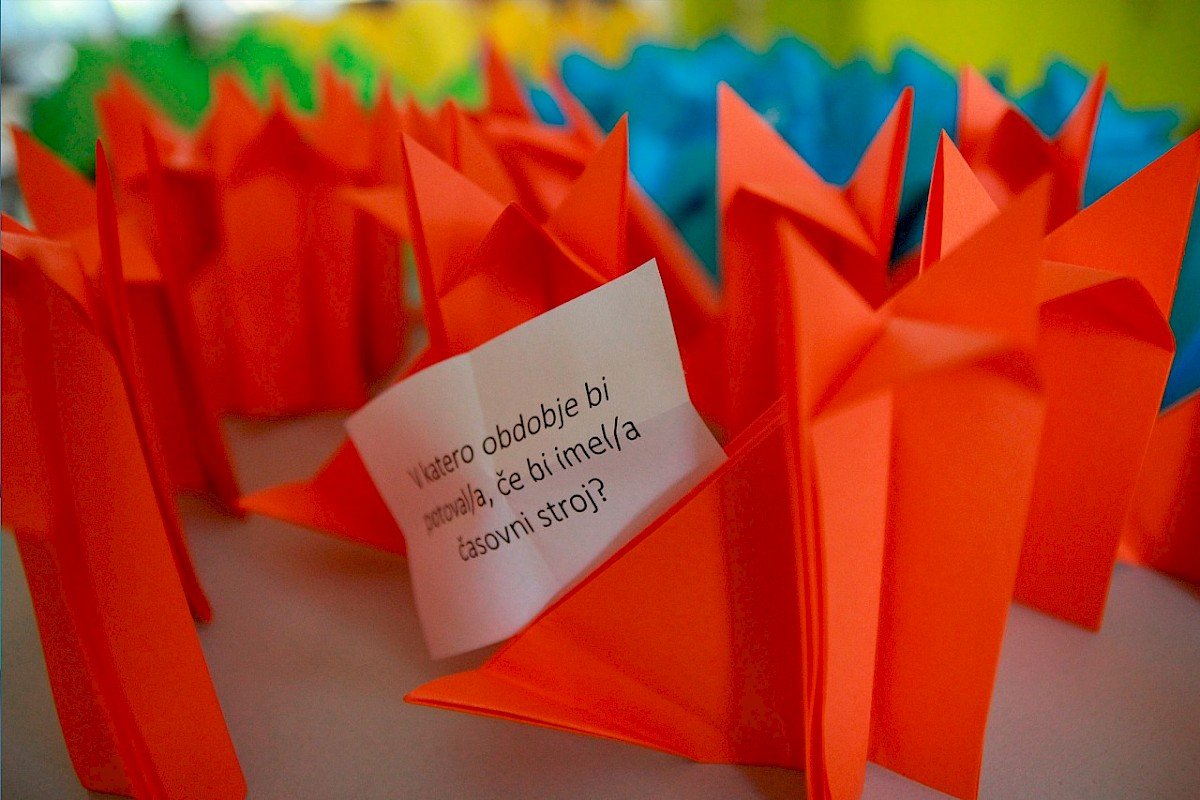 Na mizah vas bodo čez dan pričakale origami živali s provokativno temo ali preprostim vprašanjem, ki bodo spodbujali k razpravam, razmisleku in debatam. Namen aktivnosti je medsebojno spoznavanje, krepitev dialoga in argumentiranega kritičnega mišljenja med mladimi. Aktivnost bo potekala dnevno do 31. 7. 2015.